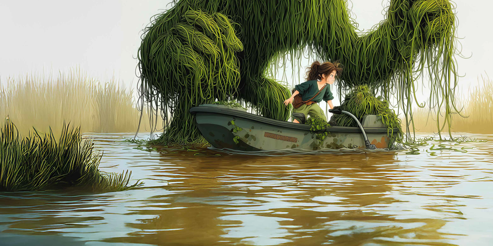 De waterplanten groeien razendsnel en kunnen complete watergangen overwoekeren. Dat is slecht nieuws voor de natuur én voor waterrecreanten: oorspronkelijke planten en dieren verdwijnen, vaarwegen slibben dicht en schroeven van boten lopen vast.